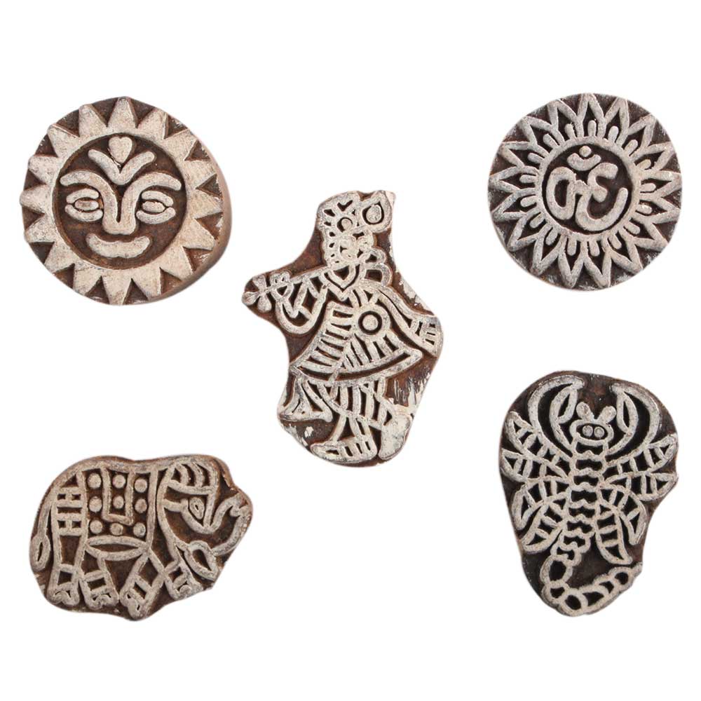 Set of 5 Piece New Mix Wooden Printing Block. Ideal for Using on Fabric, Paper, Canvas, etc. These Blocks can be use to Print with Oil Colors, Fabric Colors, Water Colors, Acrylic Colors and Vegetable Colors.