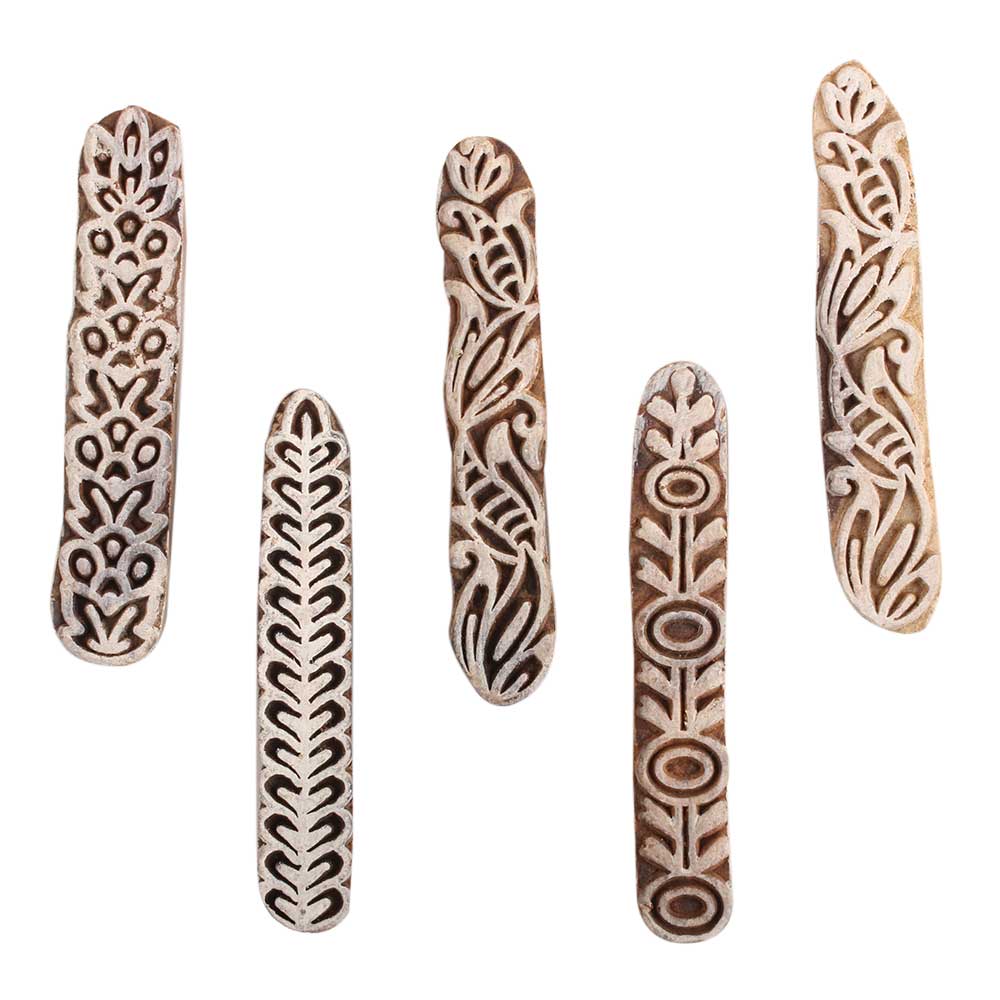 Set of 5 Piece New Mix Wooden Printing Block. Ideal for Using on Fabric, Paper, Canvas, etc. These Blocks can be use to Print with Oil Colors, Fabric Colors, Water Colors, Acrylic Colors and Vegetable Colors.