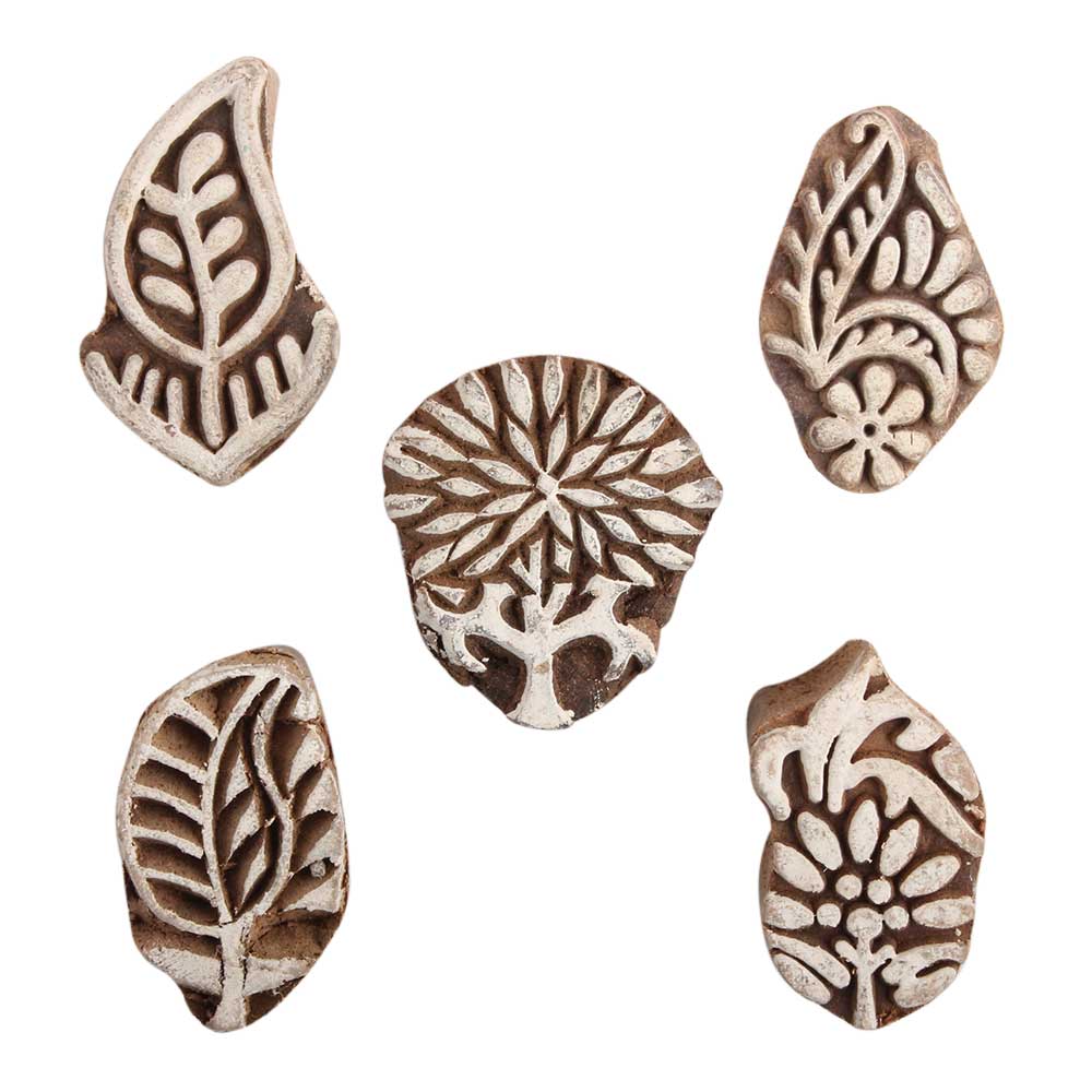 Set of 5 Piece New Mix Wooden Printing Block. Ideal for use on Fabric, Paper, Canvas, Etc. These Blocks can be use to Print with Oil Colors, Fabric Colors, Water Colors, Acrylic Colors and Vegetable Colors.