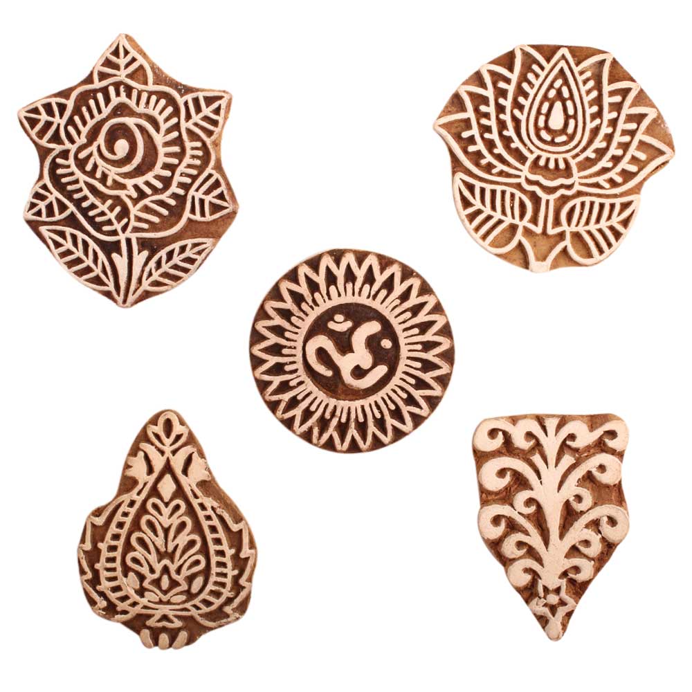 Set of 5 Piece New Mix Wooden Printing Block. Ideal for use on Fabric, Paper, Canvas, etc. These Blocks can be use to Print with Oil Colors, Fabric Colors, Water Colors, Acrylic Colors and Vegetable Colors.