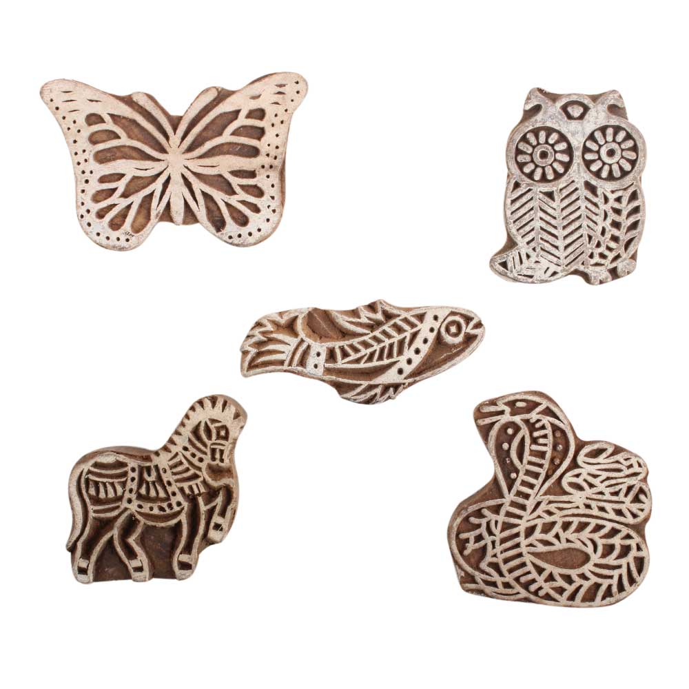 Set of 5 Piece New Mix Wooden Printing Block. Ideal for use on Fabric, Paper, Canvas, etc. These Blocks can be use to Print with Oil Colors, Fabric Colors, Water Colors, Acrylic Colors and Vegetable Colors.