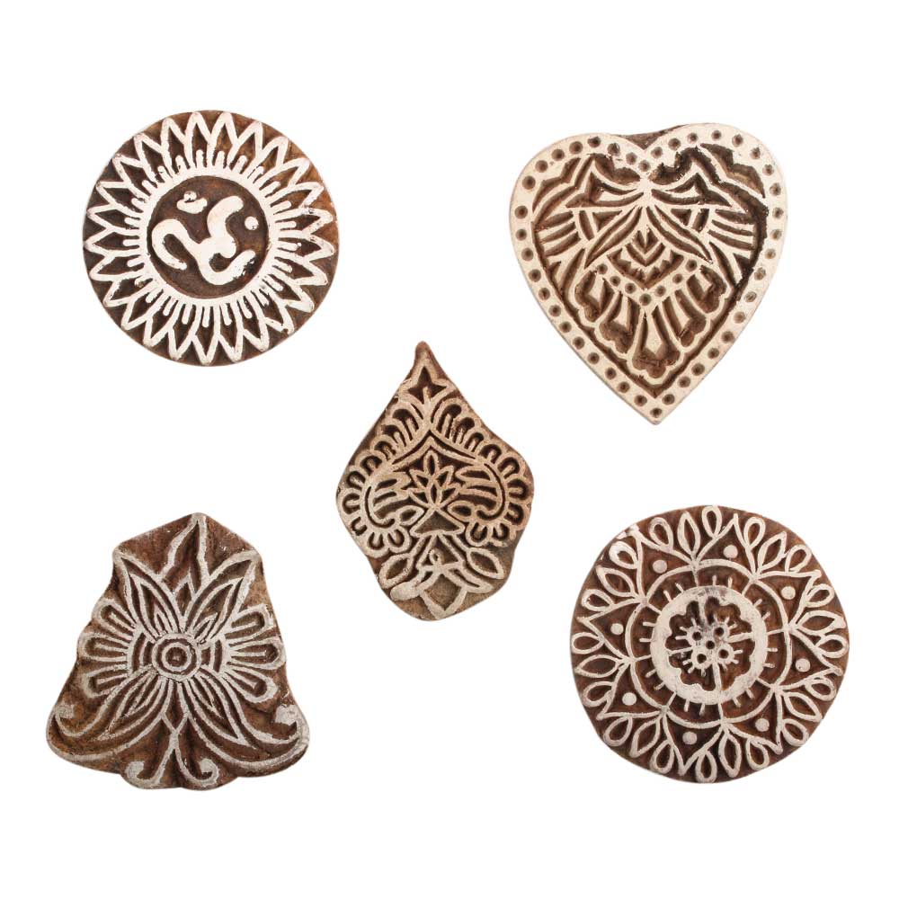 Set of 5 Piece New Mix Wooden Printing Block. Ideal for use on Fabric, Paper, Canvas, etc. These Blocks can be use to Print with Oil Colors, Fabric Colors, Water Colors, Acrylic Colors and Vegetable Colors.