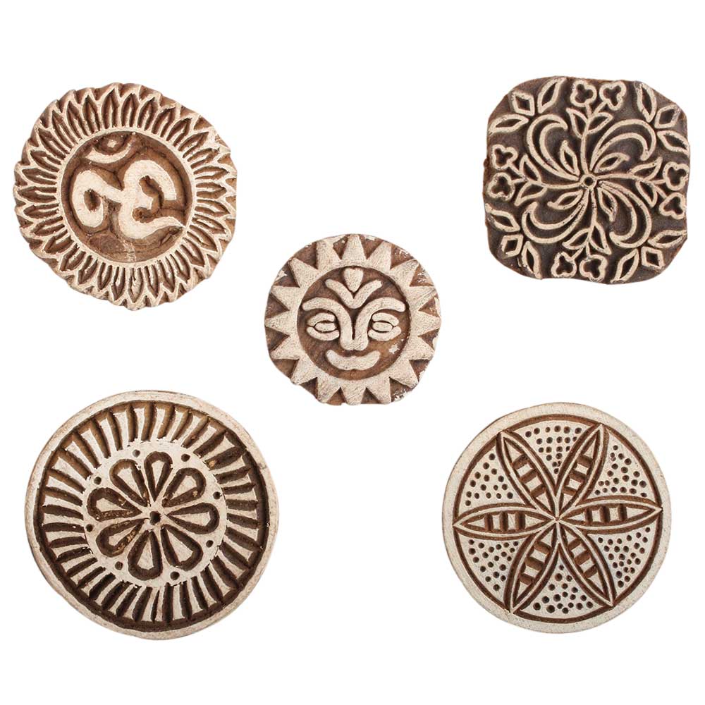 Set of 5 Piece New Mix Wooden Printing Block. Ideal for use on Fabric, Paper, Canvas, etc. These Blocks can be use to Print with Oil Colors, Fabric Colors, Water Colors, Acrylic Colors and Vegetable Colors.