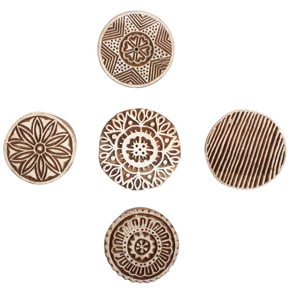 Set of 5 Piece New Mix Wooden Printing Block. Ideal for use on Fabric, Paper, Canvas, etc. These Blocks can be use to Print with Oil Colors, Fabric Colors, Water Colors, Acrylic Colors and Vegetable Colors.