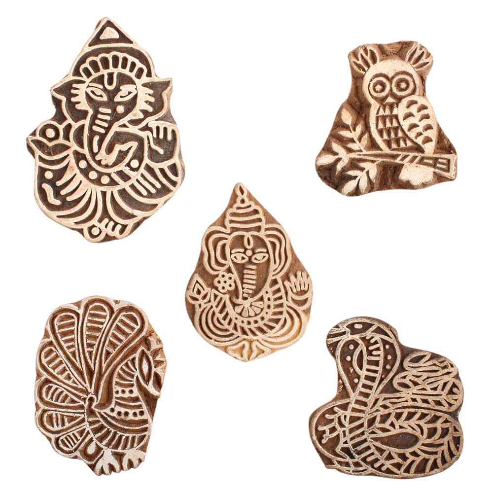 Set of 5 Piece New Mix Wooden Printing Block. Ideal for use on Fabric, Paper, Canvas, etc. These Blocks can be use to Print with Oil Colors, Fabric Colors, Water Colors, Acrylic Colors and Vegetable Colors.