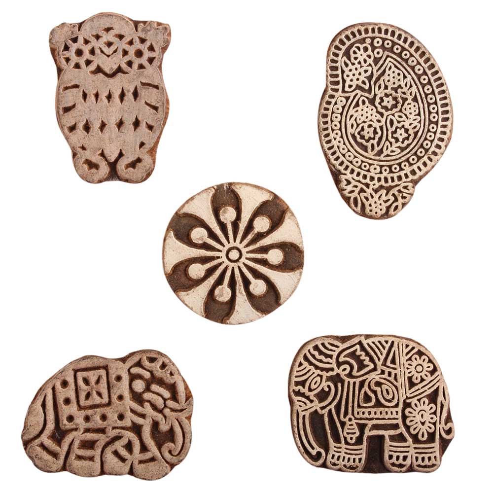 Set of 5 Piece New Mix Wooden Printing Block. Ideal for use on Fabric, Paper, Canvas, etc. These Blocks can be use to Print with Oil Colors, Fabric Colors, Water Colors, Acrylic Colors and Vegetable Colors.