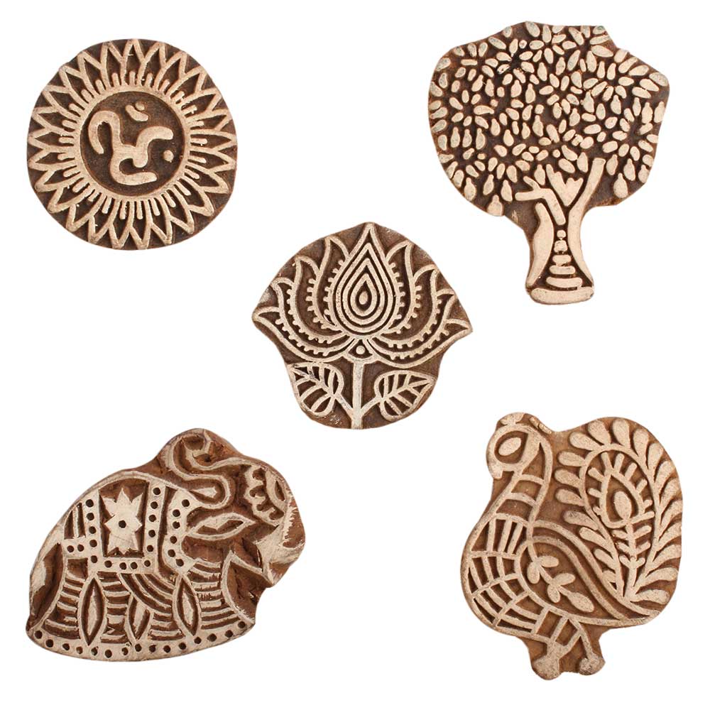 Set of 5 Piece New Mix Wooden Printing Block. Ideal for use on Fabric, Paper, Canvas, etc. These Blocks can be use to Print with Oil Colors, Fabric Colors, Water Colors, Acrylic Colors and Vegetable Colors.