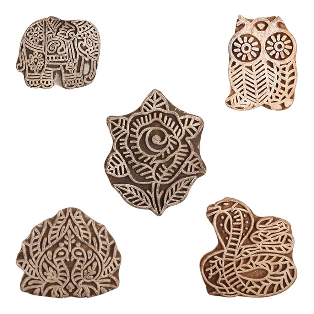 Set of 5 Piece New Mix Wooden Printing Block. Ideal for use on Fabric, Paper, Canvas, etc. These Blocks can be use to Print with Oil Colors, Fabric Colors, Water Colors, Acrylic Colors and Vegetable Colors.
