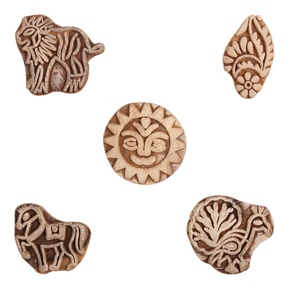 Set of 5 Piece New Mix Wooden Printing Block. Ideal for use on Fabric, Paper, Canvas, etc. These Blocks can be use to Print with Oil Colors, Fabric Colors, Water Colors, Acrylic Colors and Vegetable Colors.