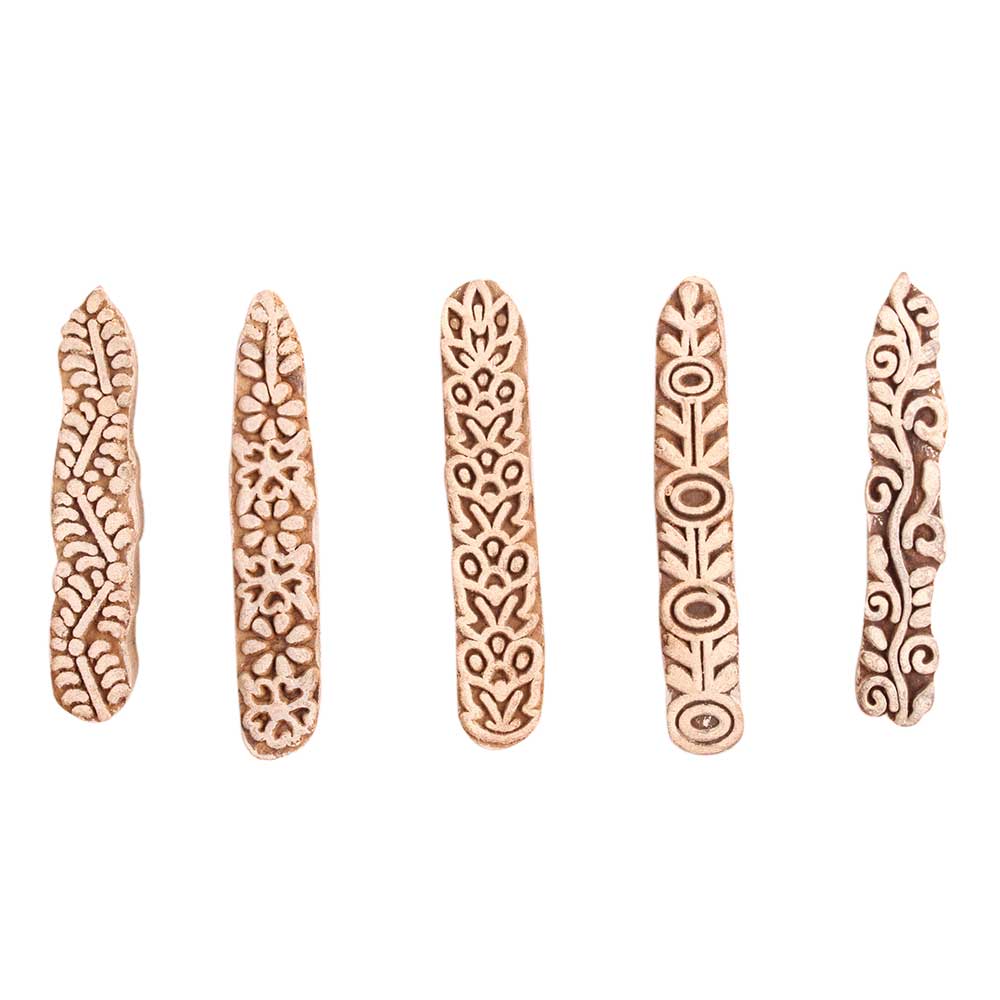 Set of 5 Piece New Mix Wooden Printing Block. Ideal for use on Fabric, Paper, Canvas, etc. These Blocks can be use to Print with Oil Colors, Fabric Colors, Water Colors, Acrylic Colors and Vegetable Colors.