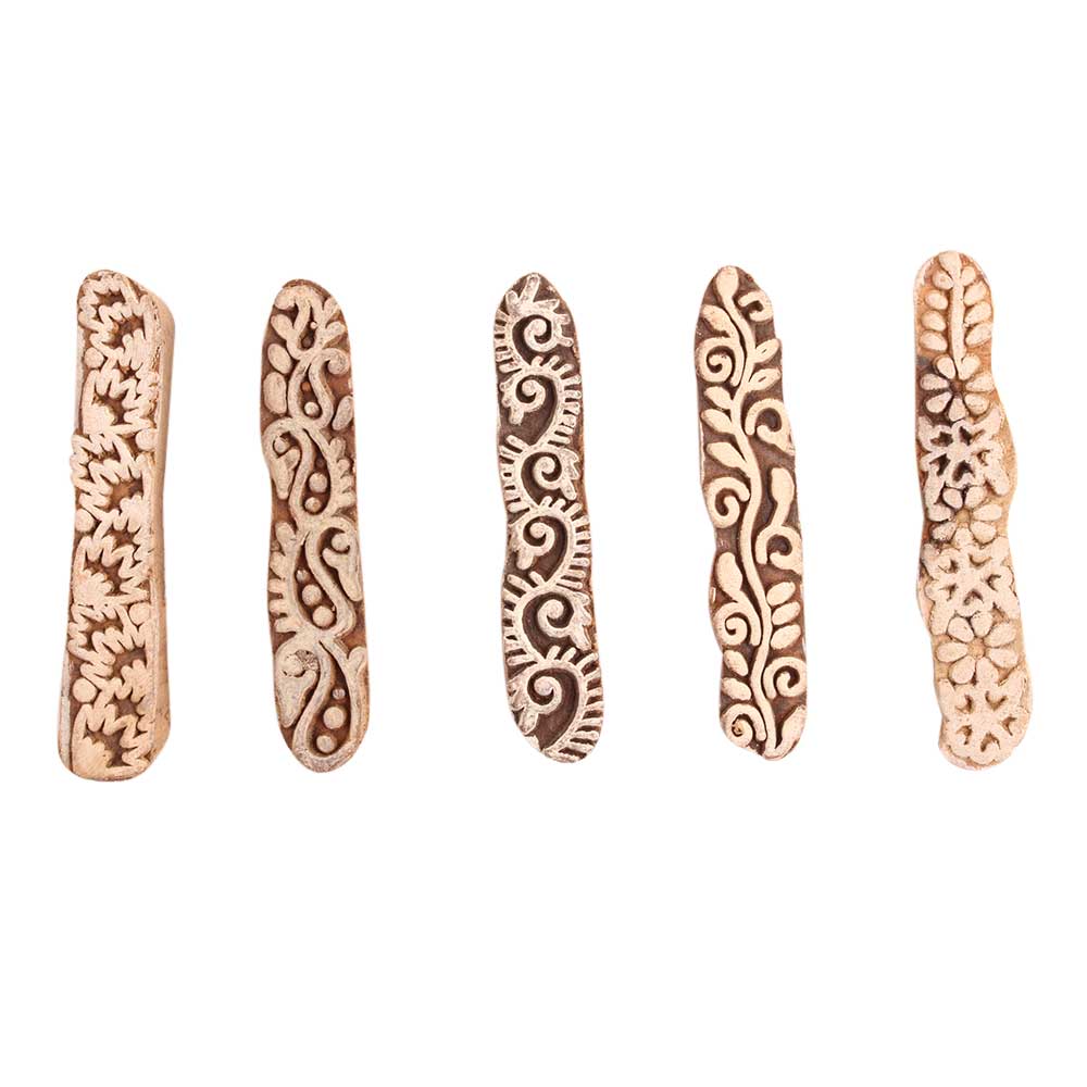 Set of 5 Piece New Mix Wooden Printing Block. Ideal for use on Fabric, Paper, Canvas, etc. These Blocks can be use to Print with Oil Colors, Fabric Colors, Water Colors, Acrylic Colors and Vegetable Colors.