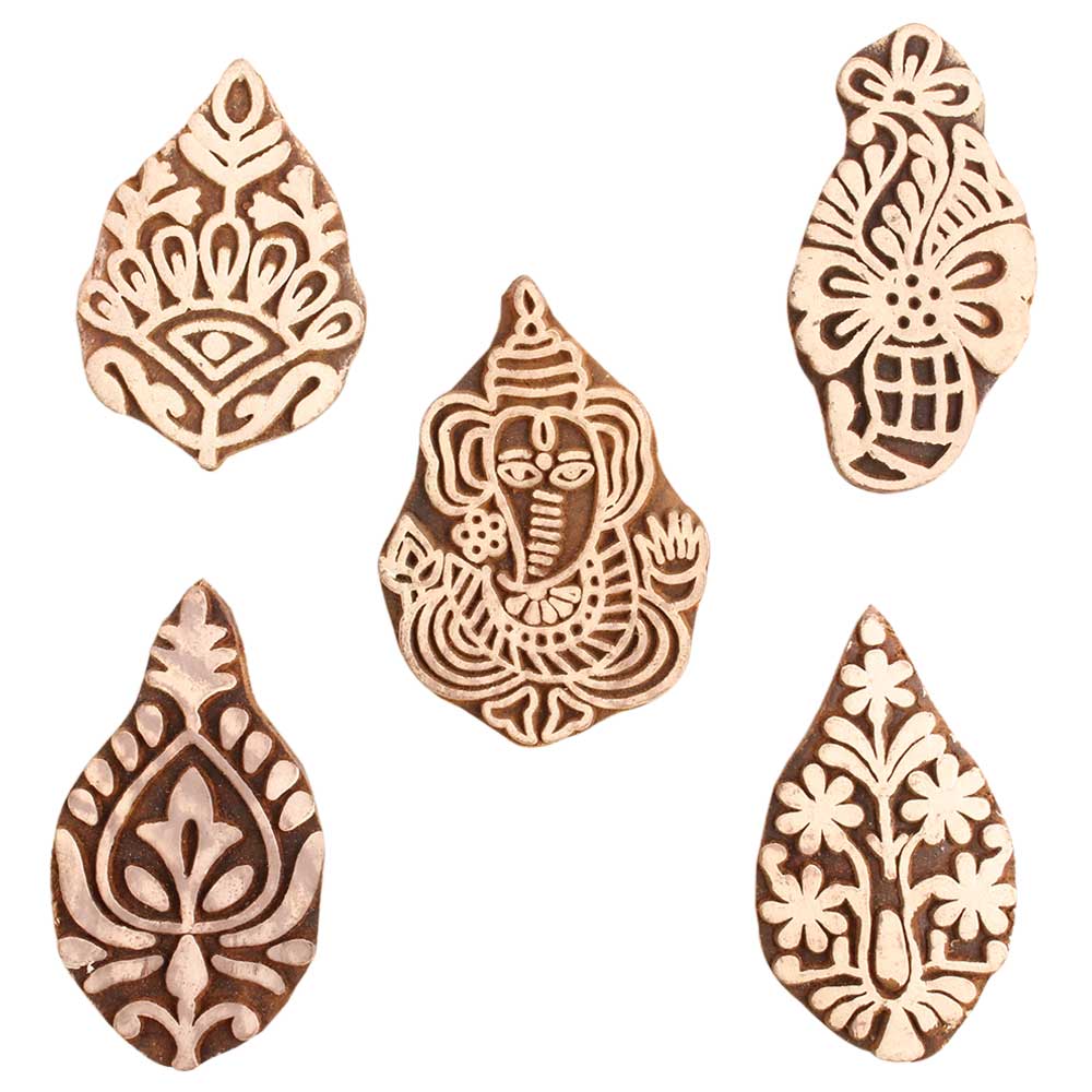 Set of 5 Piece New Mix Wooden Printing Block. Ideal for use on Fabric, Paper, Canvas, etc. These Blocks can be use to Print with Oil Colors, Fabric Colors, Water Colors, Acrylic Colors and Vegetable Colors.