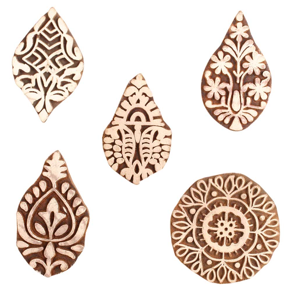Set of 5 Piece New Mix Wooden Printing Block. Ideal for use on Fabric, Paper, Canvas, etc. These Blocks can be use to Print with Oil Colors, Fabric Colors, Water Colors, Acrylic Colors and Vegetable Colors.