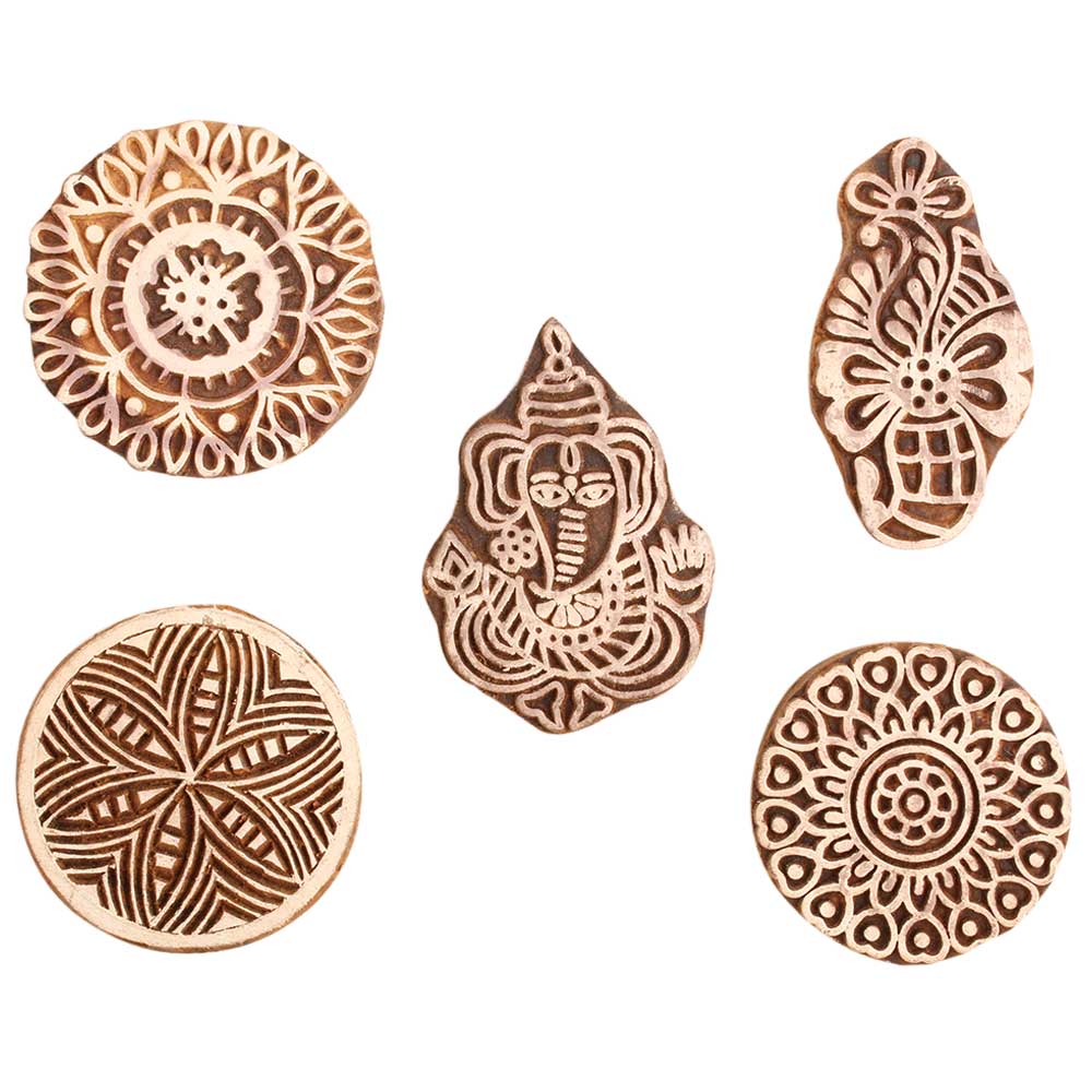 Set of 5 Piece New Mix Wooden Printing Block. Ideal for use on Fabric, Paper, Canvas, etc. These Blocks can be use to Print with Oil Colors, Fabric Colors, Water Colors, Acrylic Colors and Vegetable Colors.