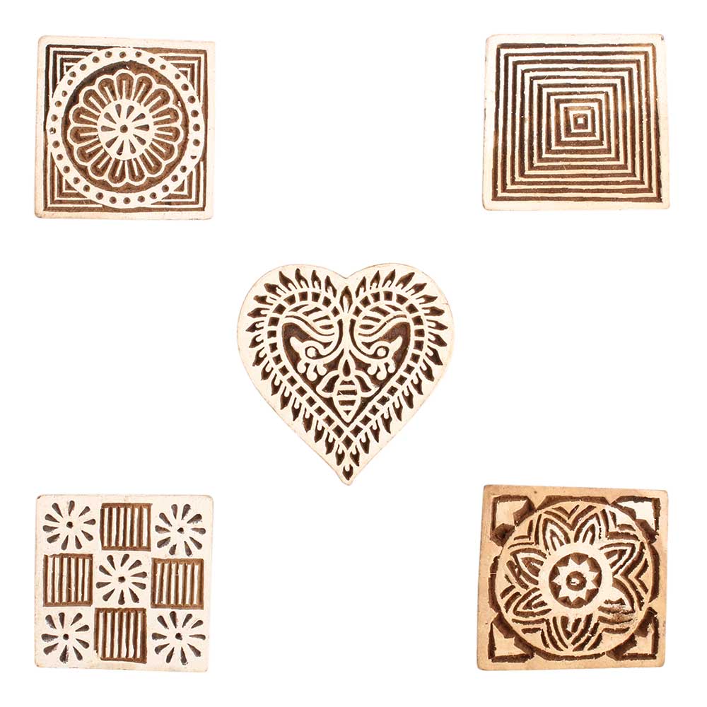 Set of 5 Piece New Mix Wooden Printing Block. Ideal for use on Fabric, Paper, Canvas, etc. These Blocks can be use to Print with Oil Colors, Fabric Colors, Water Colors, Acrylic Colors and Vegetable Colors.