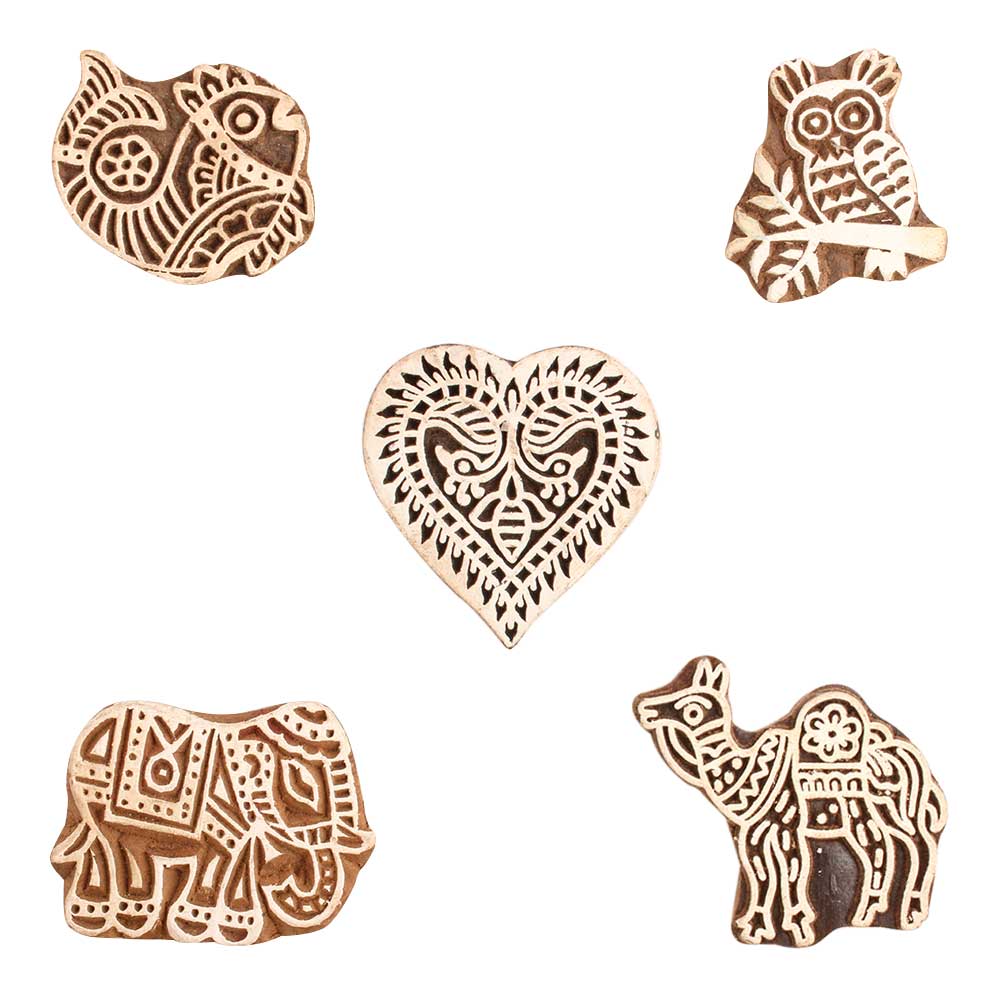 Set of 5 Piece New Mix Wooden Printing Block. Ideal for use on Fabric, Paper, Canvas, etc. These Blocks can be use to Print with Oil Colors, Fabric Colors, Water Colors, Acrylic Colors and Vegetable Colors.