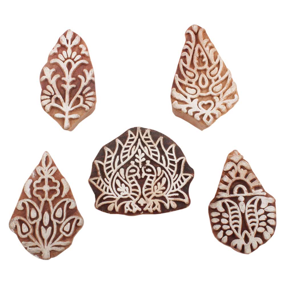 Set of 5 Piece New Mix Wooden Printing Blocks. Ideal for use on Fabric, Paper, Canvas, etc. These Blocks can be use to Print with Oil Colors, Fabric Colors, Water Colors, Acrylic Colors and Vegetable Colors.