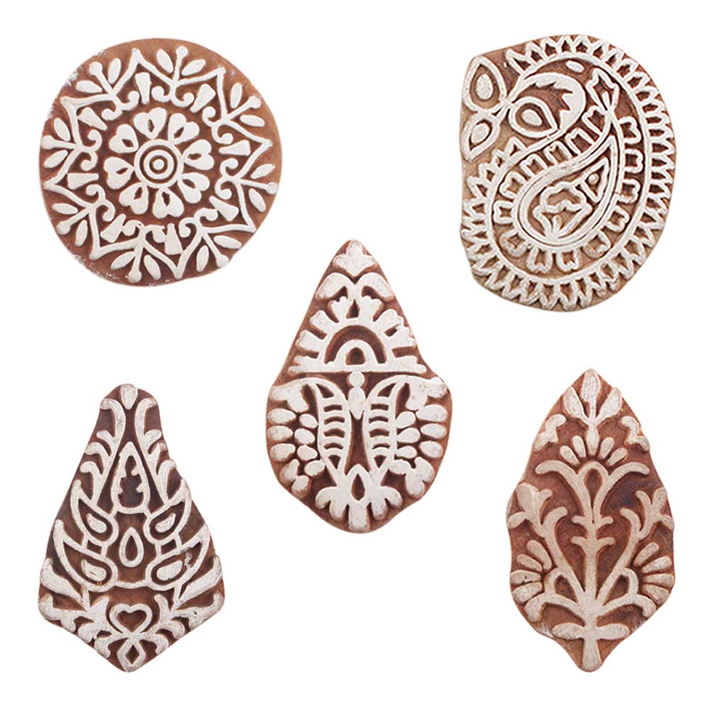 Set of 5 Piece New Mix Wooden Printing Blocks. Ideal for use on Fabric, Paper, Canvas, etc. These Blocks can be use to Print with Oil Colors, Fabric Colors, Water Colors, Acrylic Colors and Vegetable Colors.