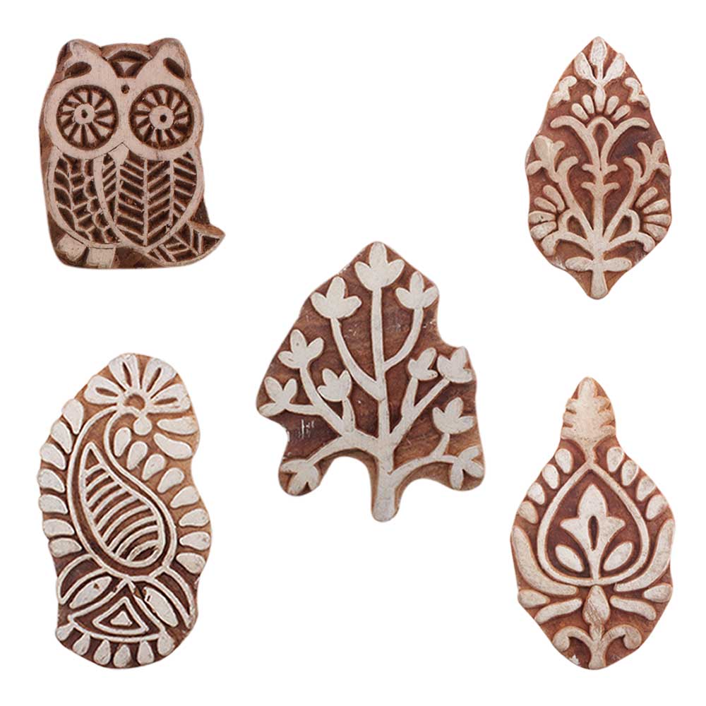 Set of 5 Piece New Mix Wooden Printing Blocks. Ideal for use on Fabric, Paper, Canvas, etc. These Blocks can be use to Print with Oil Colors, Fabric Colors, Water Colors, Acrylic Colors and Vegetable Colors.