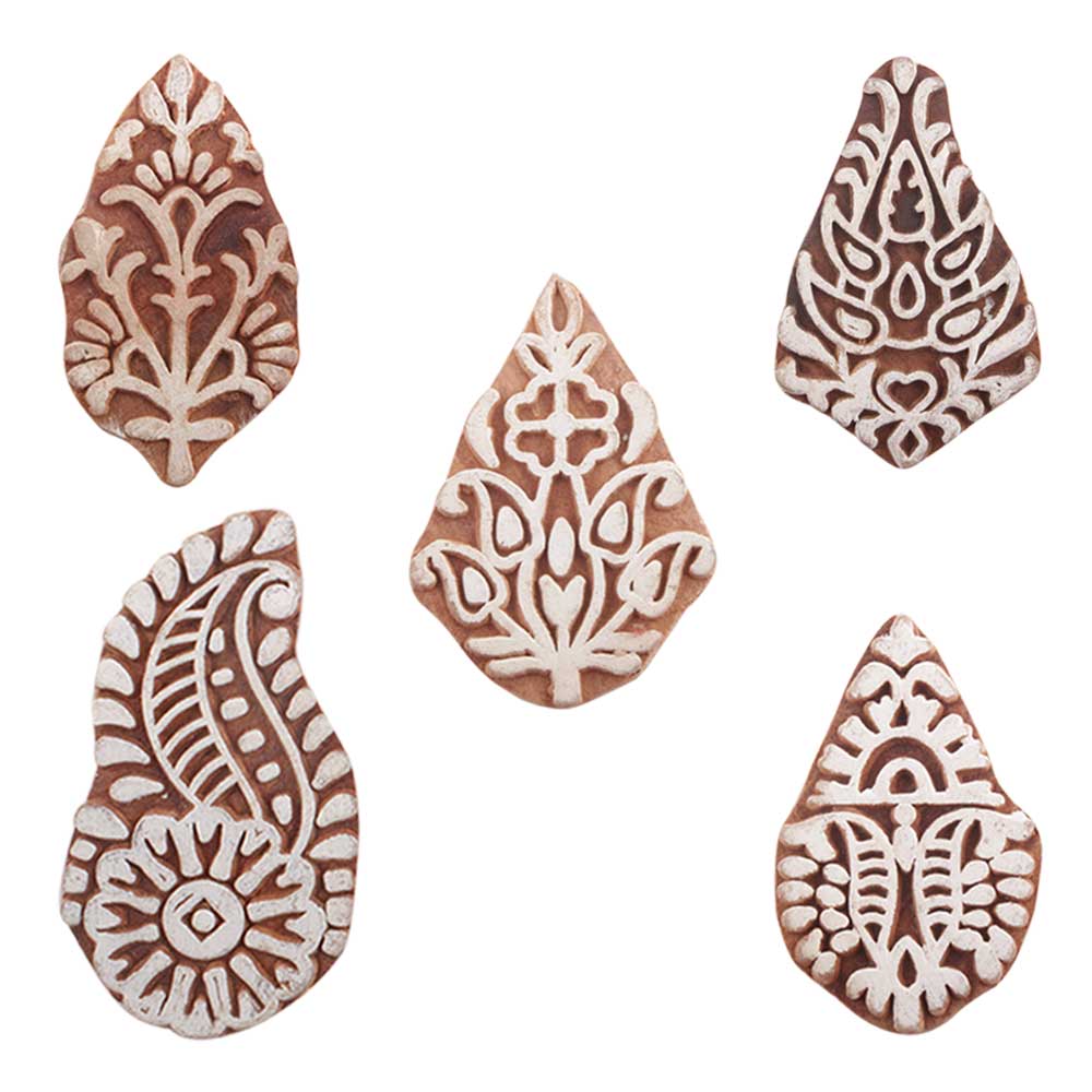 Set of 5 Piece New Mix Wooden Printing Blocks. Ideal for use on Fabric, Paper, Canvas, etc. These Blocks can be use to Print with Oil Colors, Fabric Colors, Water Colors, Acrylic Colors and Vegetable Colors.