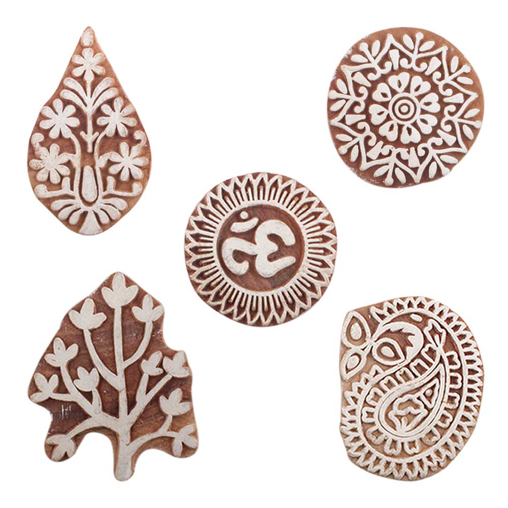 Set of 5 Piece New Mix Wooden Printing Blocks. Ideal for use on Fabric, Paper, Canvas, etc. These Blocks can be use to Print with Oil Colors, Fabric Colors, Water Colors, Acrylic Colors and Vegetable Colors.