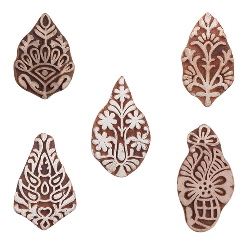 Set of 5 Piece New Mix Wooden Printing Blocks. Ideal for use on Fabric, Paper, Canvas, etc. These Blocks can be use to Print with Oil Colors, Fabric Colors, Water Colors, Acrylic Colors and Vegetable Colors.