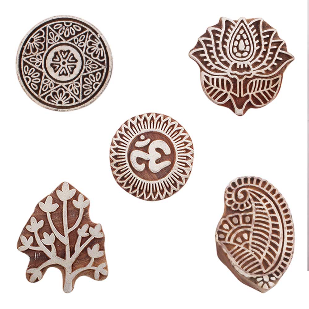 Set of 5 Piece New Mix Wooden Printing Blocks. Ideal for use on Fabric, Paper, Canvas, etc. These Blocks can be use to Print with Oil Colors, Fabric Colors, Water Colors, Acrylic Colors and Vegetable Colors.