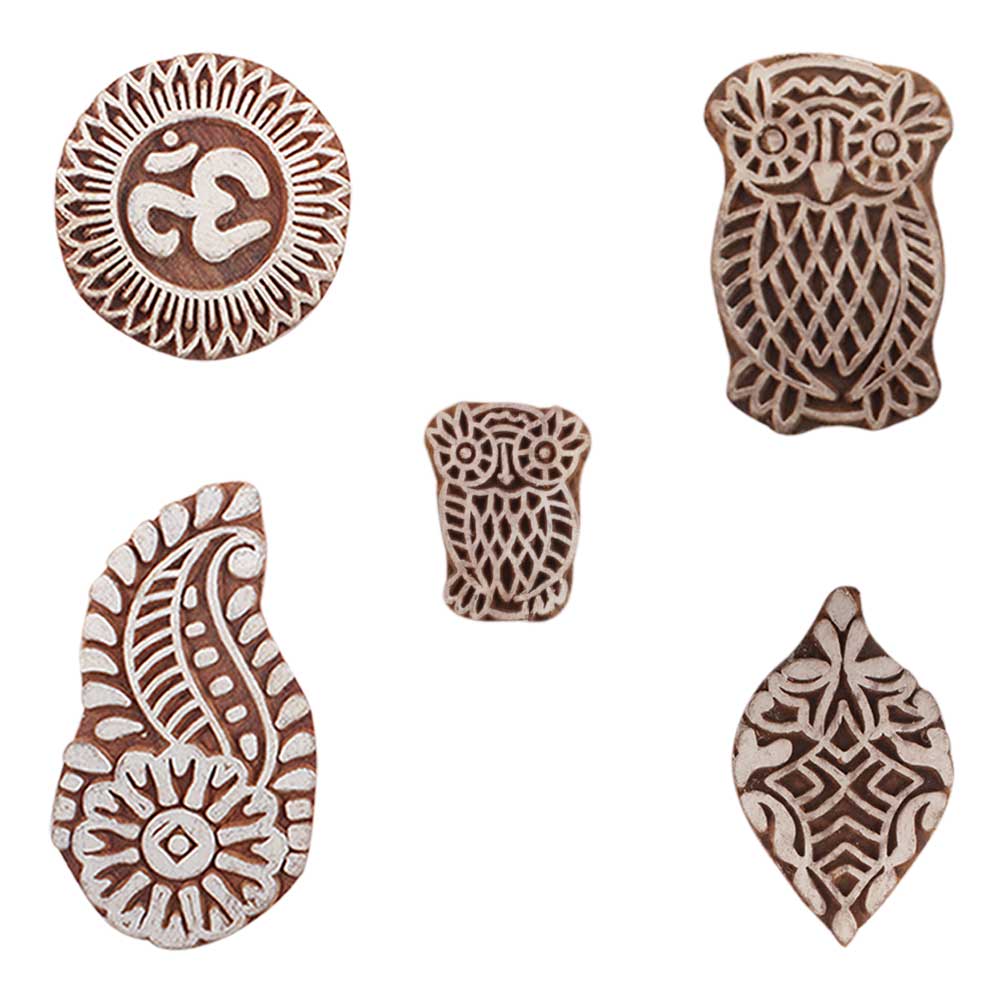 Set of 5 Piece New Mix Wooden Printing Blocks. Ideal for use on Fabric, Paper, Canvas, etc. These Blocks can be use to Print with Oil Colors, Fabric Colors, Water Colors, Acrylic Colors and Vegetable Colors.