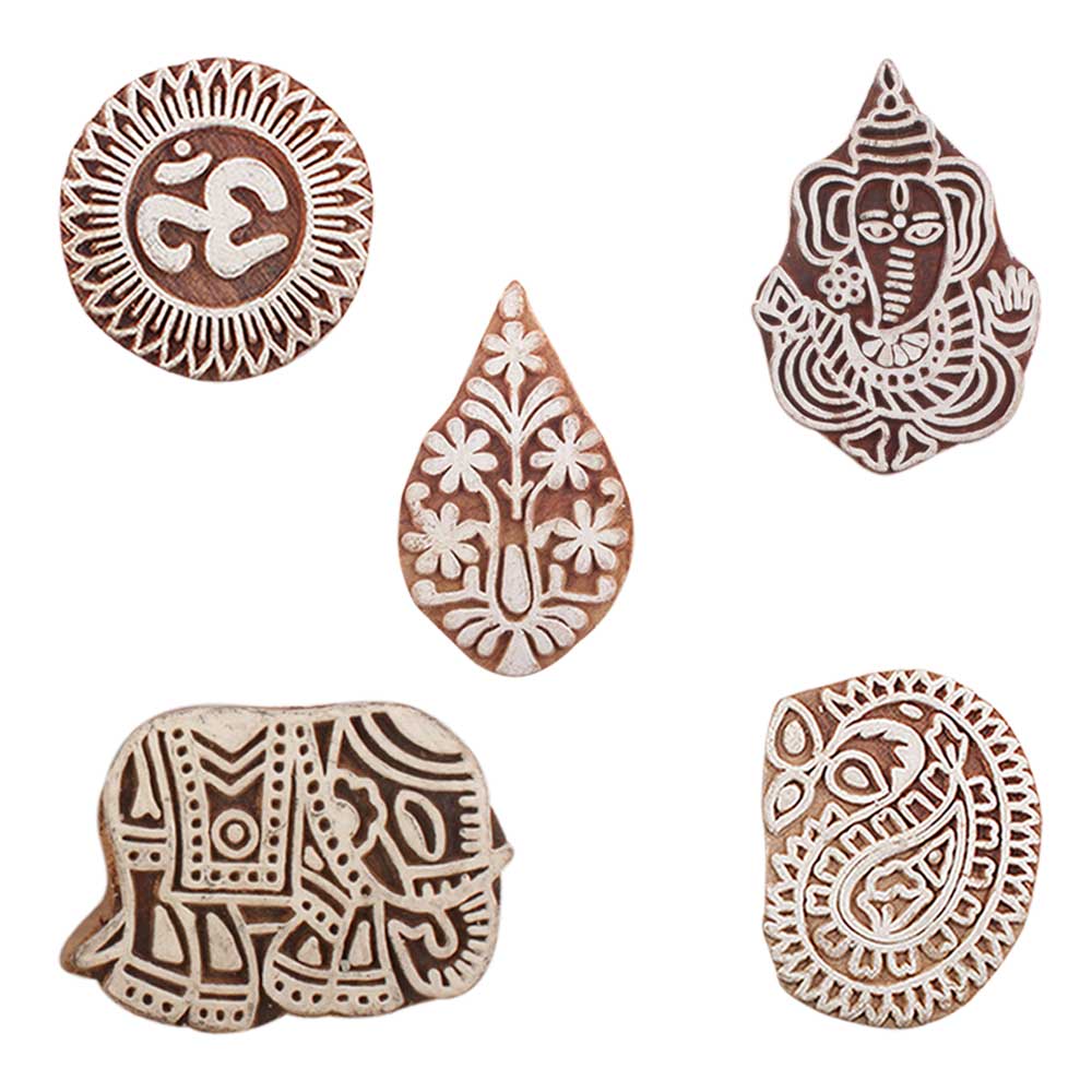 Set of 5 Piece New Mix Wooden Printing Blocks. Ideal for use on Fabric, Paper, Canvas, etc. These Blocks can be use to Print with Oil Colors, Fabric Colors, Water Colors, Acrylic Colors and Vegetable Colors.