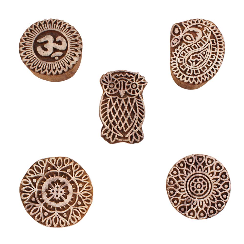 Set of 5 Piece New Mix Wooden Printing Blocks. Ideal for use on Fabric, Paper, Canvas, etc. These Blocks can be use to Print with Oil Colors, Fabric Colors, Water Colors, Acrylic Colors and Vegetable Colors.
