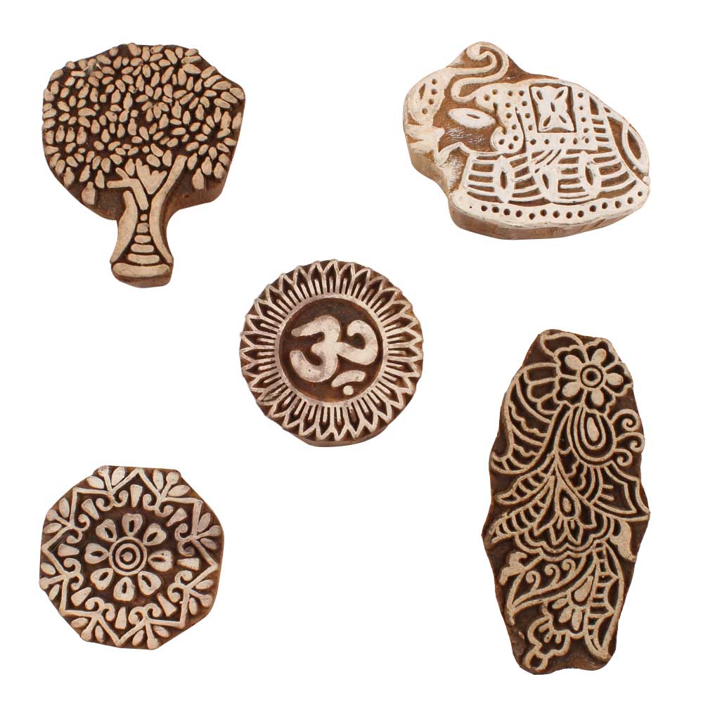 Set of 5 Piece New Mix Wooden Printing Blocks. Ideal for use on Fabric, Paper, Canvas, etc. These Blocks can be use to Print with Oil Colors, Fabric Colors, Water Colors, Acrylic Colors and Vegetable Colors.