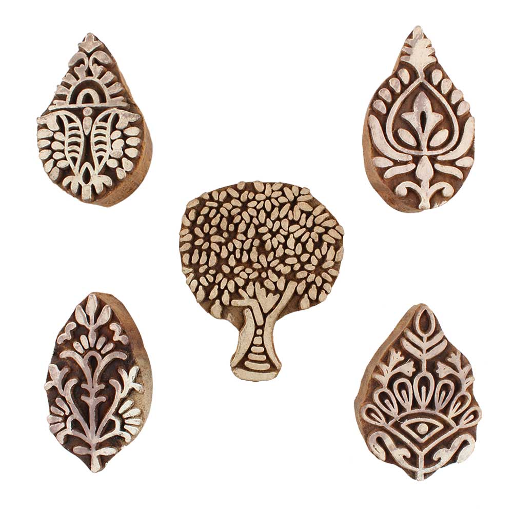 Set of 5 Piece New Mix Wooden Printing Blocks. Ideal for use on Fabric, Paper, Canvas, etc. These Blocks can be use to Print with Oil Colors, Fabric Colors, Water Colors, Acrylic Colors and Vegetable Colors.