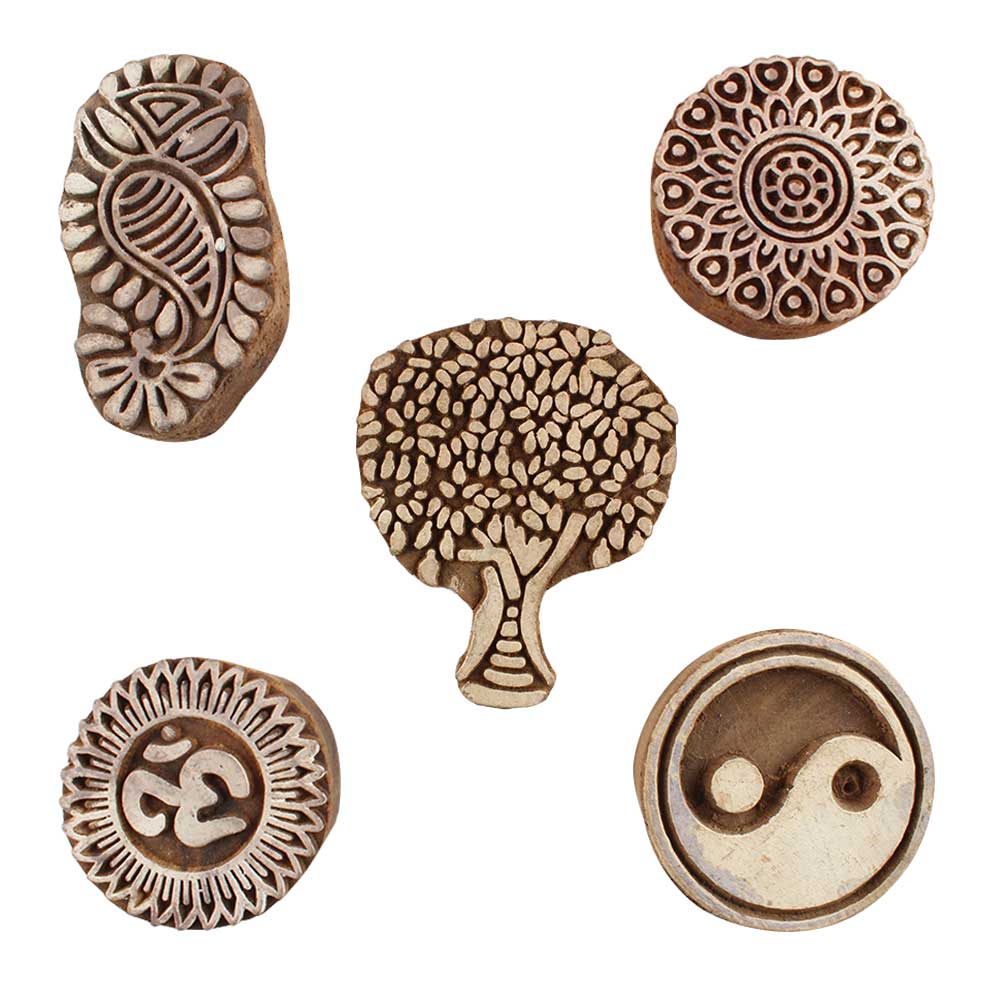 Set of 5 Piece New Mix Wooden Printing Blocks. Ideal for use on Fabric, Paper, Canvas, etc. These Blocks can be use to Print with Oil Colors, Fabric Colors, Water Colors, Acrylic Colors and Vegetable Colors.