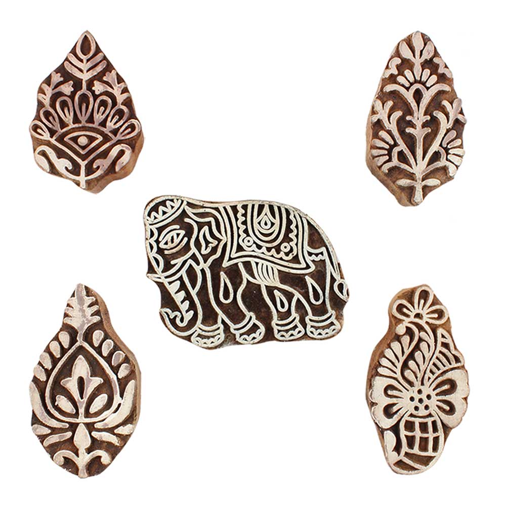 Set of 5 Piece New Mix Wooden Printing Blocks. Ideal for use on Fabric, Paper, Canvas, etc. These Blocks can be use to Print with Oil Colors, Fabric Colors, Water Colors, Acrylic Colors and Vegetable Colors.