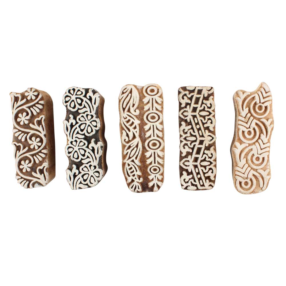 Set of 5 Piece New Mix Wooden Printing Blocks. Ideal for use on Fabric, Paper, Canvas, etc. These Blocks can be use to Print with Oil Colors, Fabric Colors, Water Colors, Acrylic Colors and Vegetable Colors.