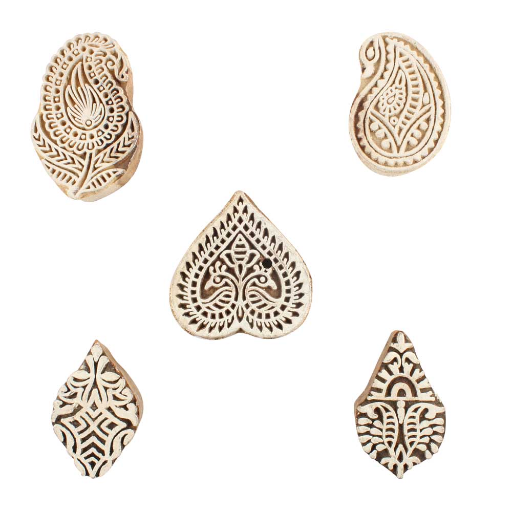 Set of 5 Piece New Mix Wooden Printing Blocks. Ideal for use on Fabric, Paper, Canvas, etc. These Blocks can be use to Print with Oil Colors, Fabric Colors, Water Colors, Acrylic Colors and Vegetable Colors.