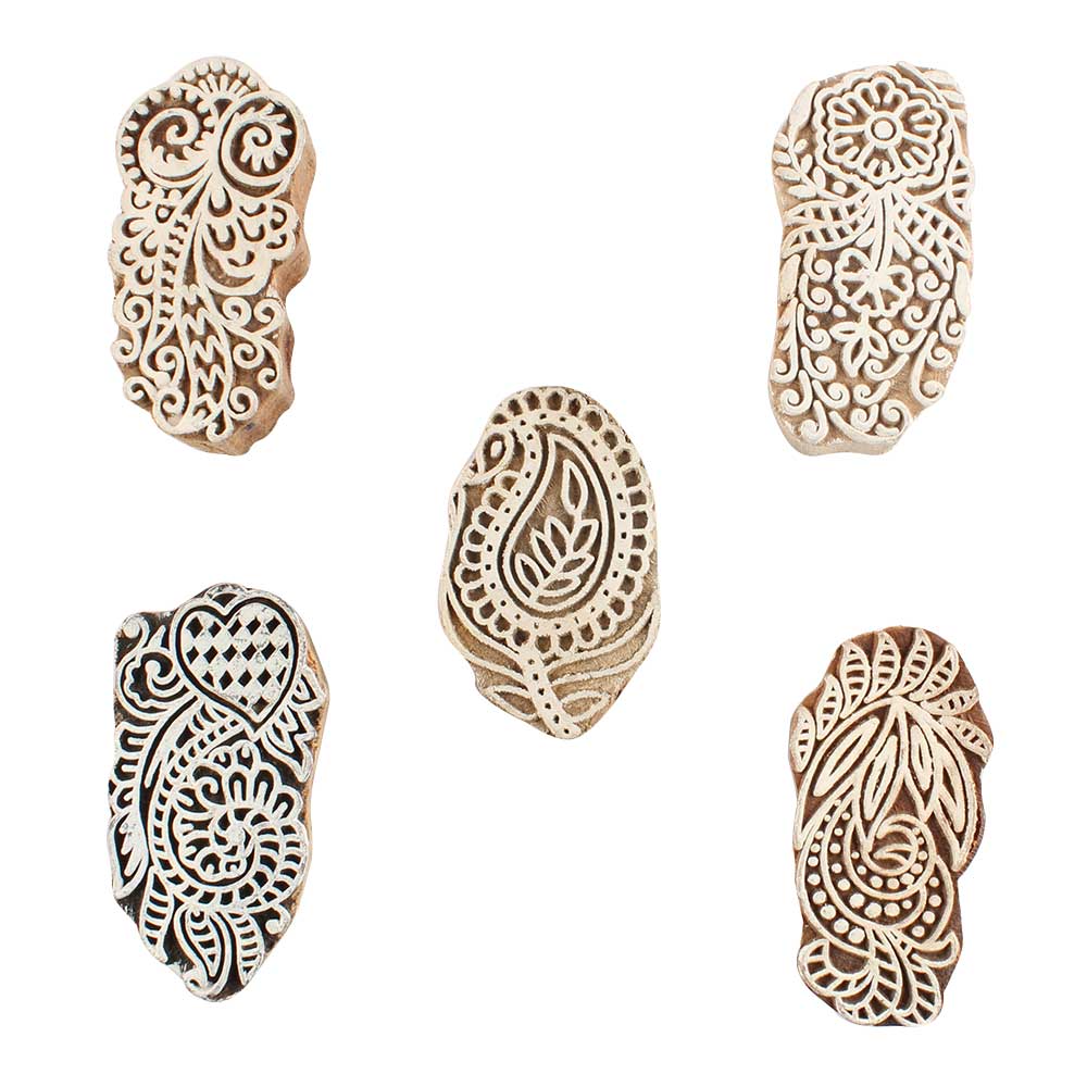 Set of 5 Piece New Mix Wooden Printing Blocks. Ideal for use on Fabric, Paper, Canvas, etc. These Blocks can be use to Print with Oil Colors, Fabric Colors, Water Colors, Acrylic Colors and Vegetable Colors.