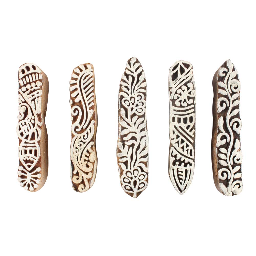 Set of 5 Piece New Mix Wooden Printing Blocks. Ideal for use on Fabric, Paper, Canvas, etc. These Blocks can be use to Print with Oil Colors, Fabric Colors, Water Colors, Acrylic Colors and Vegetable Colors.
