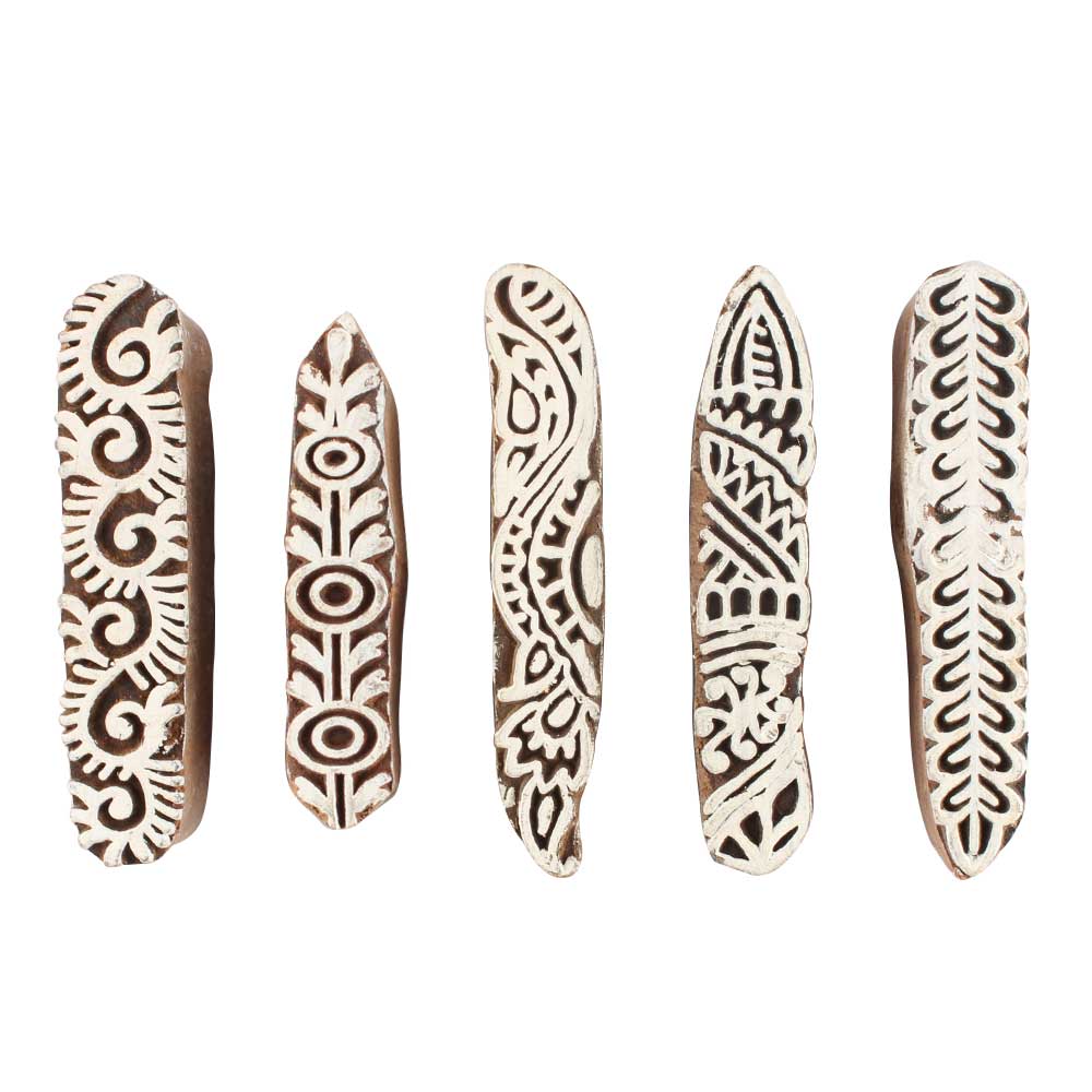 Set of 5 Piece New Mix Wooden Printing Blocks. Ideal for use on Fabric, Paper, Canvas, etc. These Blocks can be use to Print with Oil Colors, Fabric Colors, Water Colors, Acrylic Colors and Vegetable Colors.