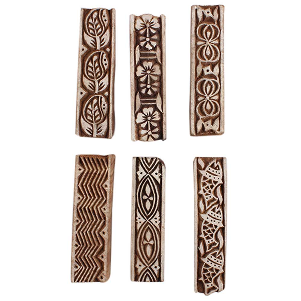Set of 6 Piece New Mix Wooden Printing Block. Ideal for Using on Fabric, Paper, Canvas, etc. These Blocks can be use to Print with Oil Colors, Fabric Colors, Water Colors, Acrylic Colors and Vegetable Colors.