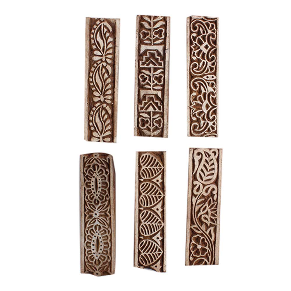 Set of 6 Piece New Mix Wooden Printing Block. Ideal for Using on Fabric, Paper, Canvas, etc. These Blocks can be use to Print with Oil Colors, Fabric Colors, Water Colors, Acrylic Colors and Vegetable Colors.