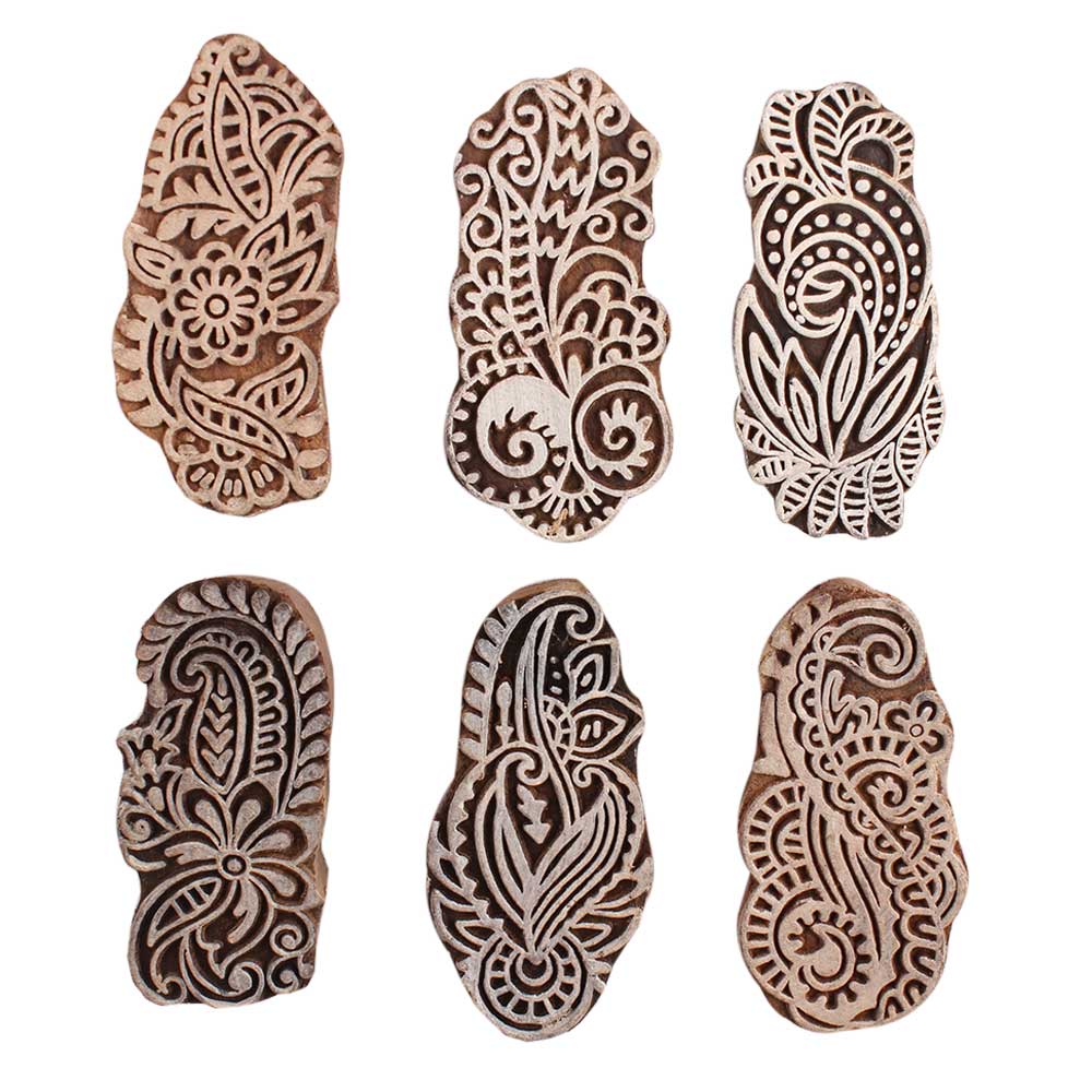 Set of 6 Piece New Mix Wooden Printing Block. Ideal for Using on Fabric, Paper, Canvas, etc. These Blocks can be use to Print with Oil Colors, Fabric Colors, Water Colors, Acrylic Colors and Vegetable Colors.