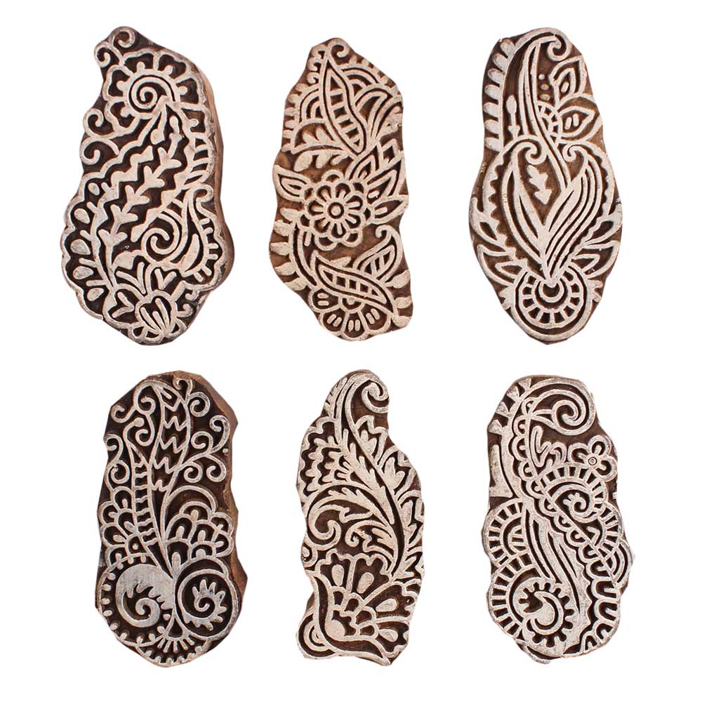 Set of 6 Piece New Mix Wooden Printing Block. Ideal for Using on Fabric, Paper, Canvas, etc. These Blocks can be use to Print with Oil Colors, Fabric Colors, Water Colors, Acrylic Colors and Vegetable Colors.