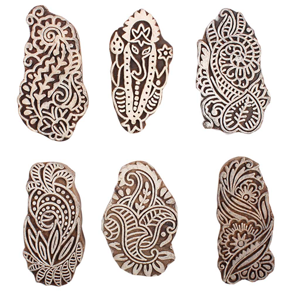 Set of 6 Piece New Mix Wooden Printing Block. Ideal for Using on Fabric, Paper, Canvas, etc. These Blocks can be use to Print with Oil Colors, Fabric Colors, Water Colors, Acrylic Colors and Vegetable Colors.