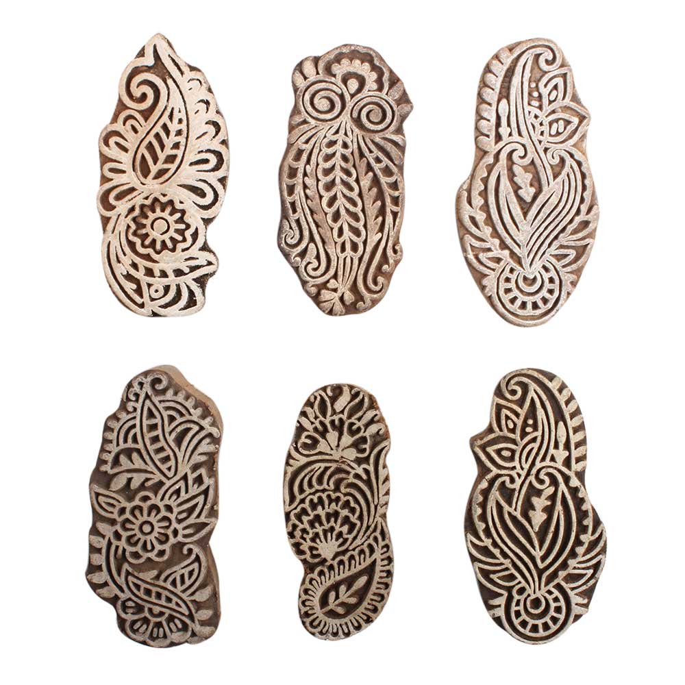 Set of 6 Piece New Mix Wooden Printing Block. Ideal for use on Fabric, Paper, Canvas, Etc. These Blocks can be use to Print with Oil Colors, Fabric Colors, Water Colors, Acrylic Colors and Vegetable Colors.