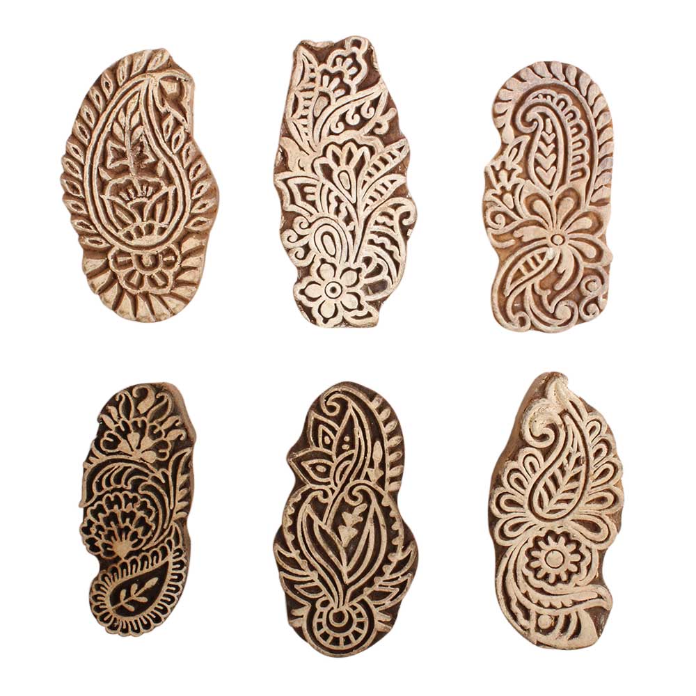 Set of 6 Piece New Mix Wooden Printing Block. Ideal for use on Fabric, Paper, Canvas, etc. These Blocks can be use to Print with Oil Colors, Fabric Colors, Water Colors, Acrylic Colors and Vegetable Colors.