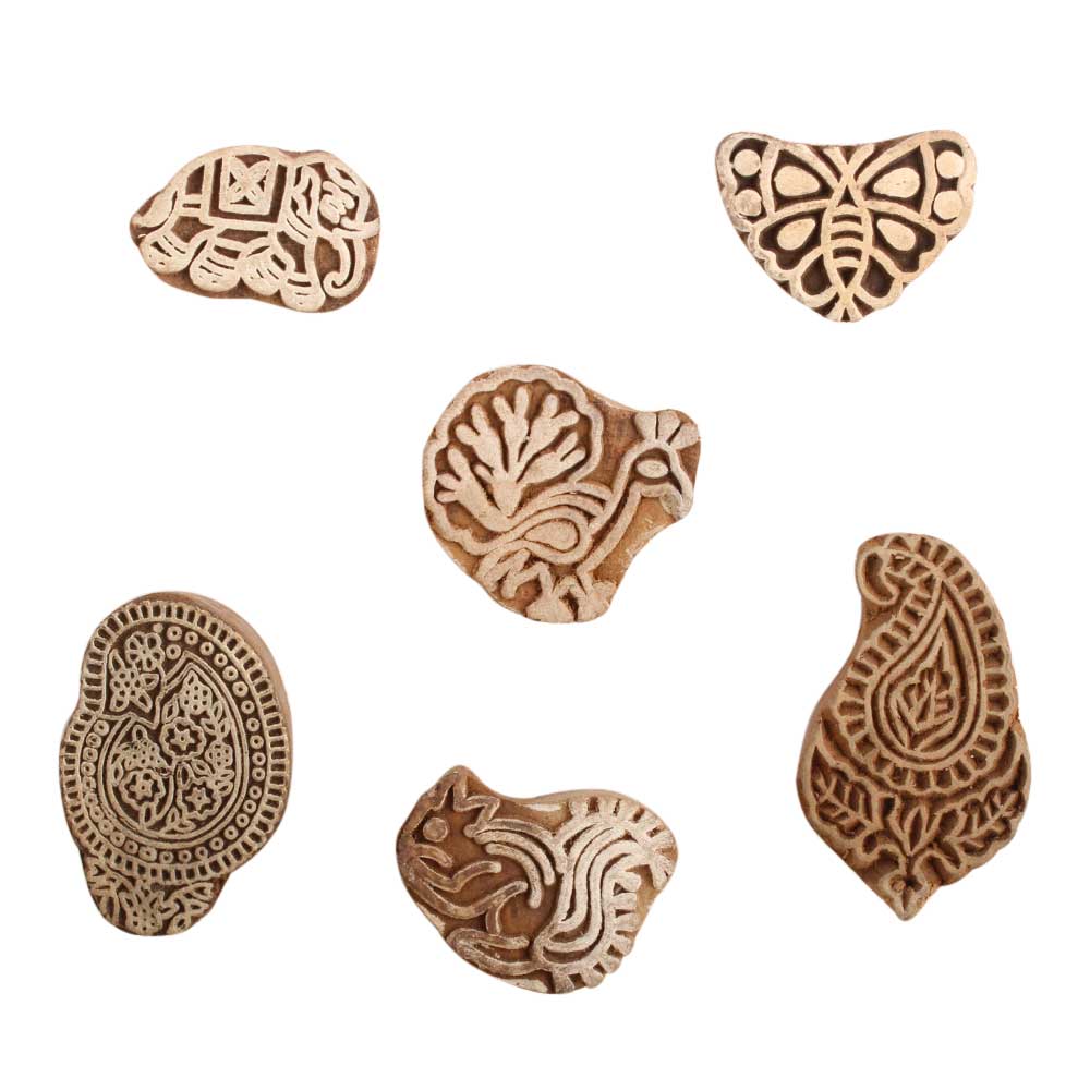 Set of 6 Piece New Mix Wooden Printing Block. Ideal for use on Fabric, Paper, Canvas, etc. These Blocks can be use to Print with Oil Colors, Fabric Colors, Water Colors, Acrylic Colors and Vegetable Colors.
