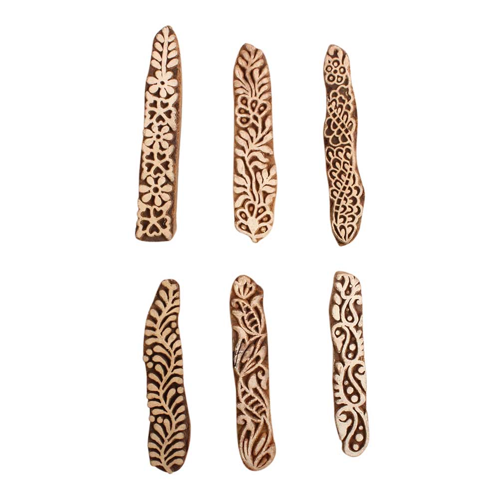 Set of 6 Piece New Mix Wooden Printing Block. Ideal for use on Fabric, Paper, Canvas, etc. These Blocks can be use to Print with Oil Colors, Fabric Colors, Water Colors, Acrylic Colors and Vegetable Colors.