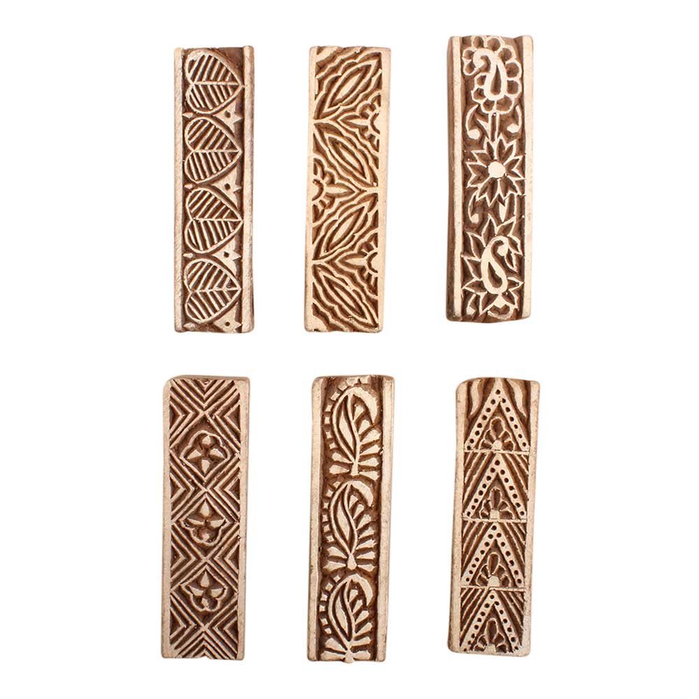 Set of 6 Piece New Mix Wooden Printing Block. Ideal for use on Fabric, Paper, Canvas, etc. These Blocks can be use to Print with Oil Colors, Fabric Colors, Water Colors, Acrylic Colors and Vegetable Colors.