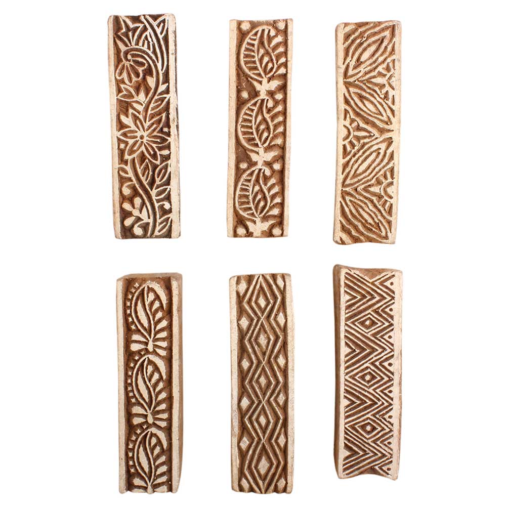 Set of 6 Piece New Mix Wooden Printing Block. Ideal for use on Fabric, Paper, Canvas, etc. These Blocks can be use to Print with Oil Colors, Fabric Colors, Water Colors, Acrylic Colors and Vegetable Colors.